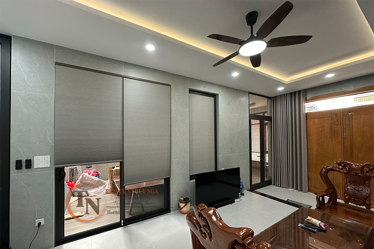 Tại nhà chú Thành, rèm tổ ong kéo tay và rèm tổ ong gắn trên kính được sử dụng cho các ô cửa nhỏ, khu vực cần cách nhiệt cao như phòng ngủ hướng nắng, giúp không gian luôn mát mẻ và dễ chịu.